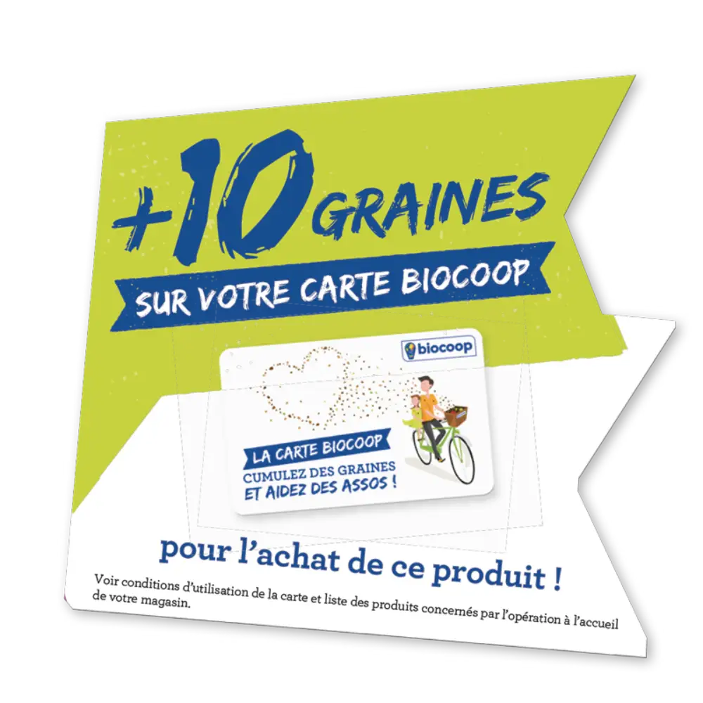 Lors d’opérations exceptionnelles, vous cumulez plus de graines grâce à l’achat de produits représentatifs des valeurs du réseau Biocoop : Marque Ensemble (filières équitables Made in France), commerce équitable, produits locaux, etc. Repérez l'affichage dans votre magasin !